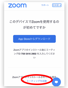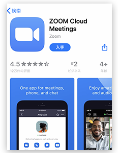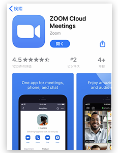 App Store からアプリをインストール「ZOOM」と検索し、一番上に出てきた「ZOOM CloudMeetings」を選択。→インストール開始