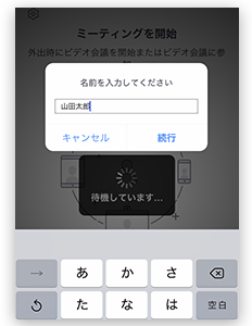 名前を入力してくださいの所にご参加いただくお客様の「お名前」を入力していただき「続行」をクリック