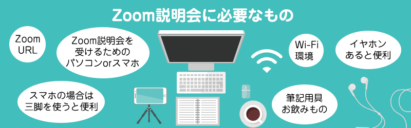 説明会参加前に、『Zoom アプリインストール』、『お名前の登録』までご準備して頂けるとスムーズに参加できます。